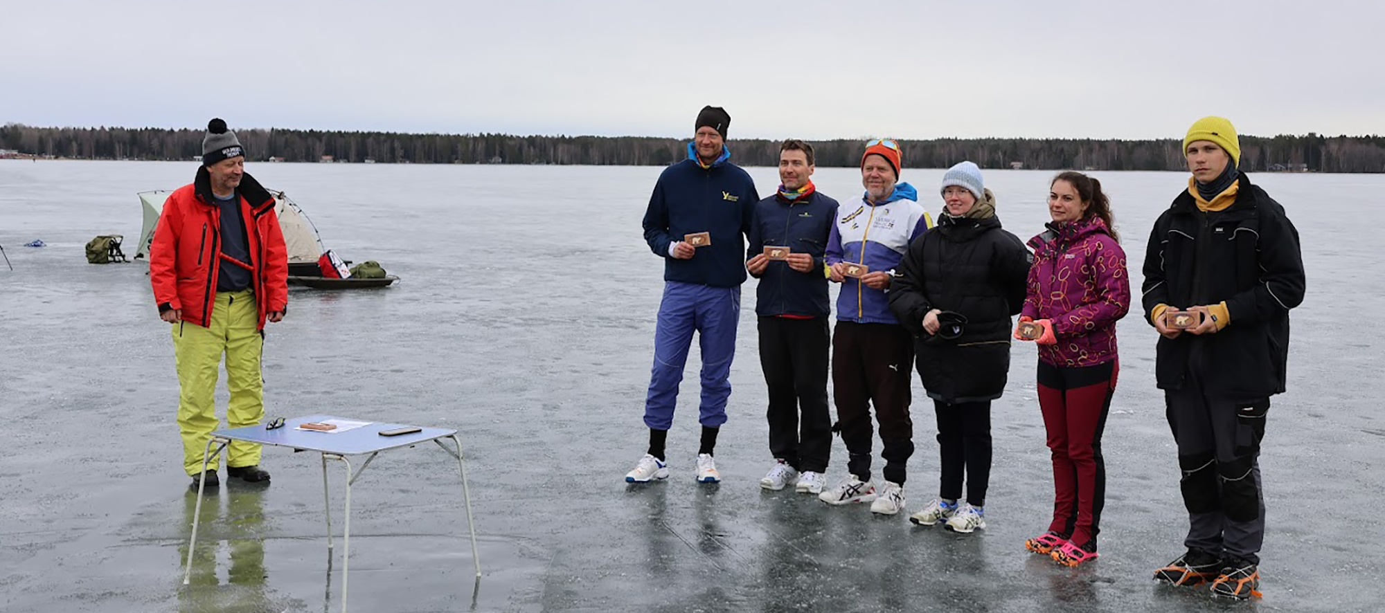 Timo Forss jakoi palkinnot  Bear cupin F1A-kilpailussa. Kuvassa ovat kolmanneksi tullut Robert Hellgren, voittaja Lauri Malila, toiseksi tullut Pär Findal sekä naisten sarjan voittaja Meri Niiranen, tsekkiläinen  Tereza Voseipkova sekä ukrainalainen juniori, Harkovan teknisessä korkeakoulussa ilmailulinjalla opiskeleva Oleksi Kosylo. Kuva: Jussi Forss