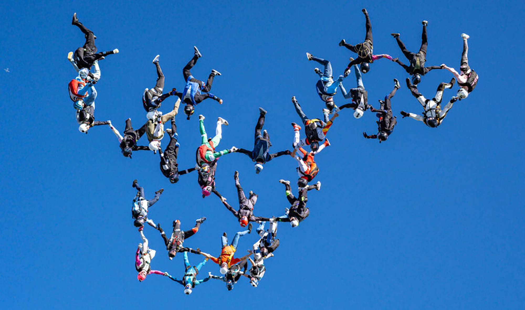 Keskiviikkopäivä jatkui vielä 30-way-hypyllä, joka myös saatiin kokoon. Näin uusi ennätys on 30 hyppääjän head-down-muodostelma.