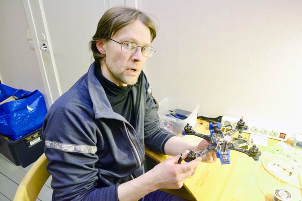 Tomi Jokinen pitää dronensa kunnossa itse huoltamalla niitä säännöllisesti. Kuva: Lasse Tuorila