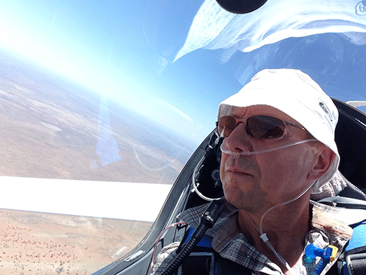 Hannu Halonen lensi Schempp-Hirth Ventus-2cxM:llä Namibian taivaalla joulukuussa 2015. Kuva: Hannu Halonen