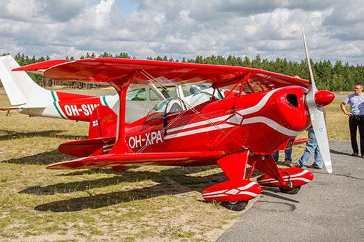 Legendaarinen taitolentokone Pitts Special, OH-XPA, jonka verhoilua uusittiin aikoinaan Saariston vetämillä kursseilla. Kuva: Harri Mustonen