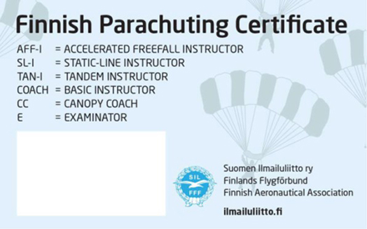 Laskuvarjolisensseissä on neljä tasoa, A-, B-, C- ja D.