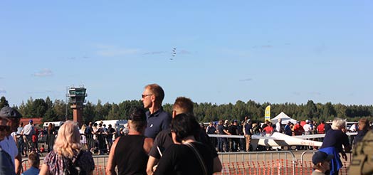 Suomen Ilmailuliiton päälentonäytöksissä esitellään aina myös harraste- ja urheiluilmailua. Taustalla näkyy SZD-55-1-purjekone, rekisteritunnukseltaan OH-856. Kuva: Minna Luukinen