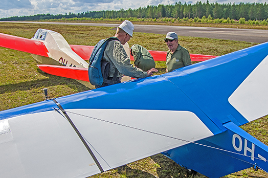 Lare tulee edelleen mielellään mukaan 100-vuotiaan Joensuu Ilmailukerhon lentotoimintaan Kiteen kentälle. Tässä saatellaan matkaan Bergfalkea ja PIK-5:ttä. Kuva: Paavo Koponen