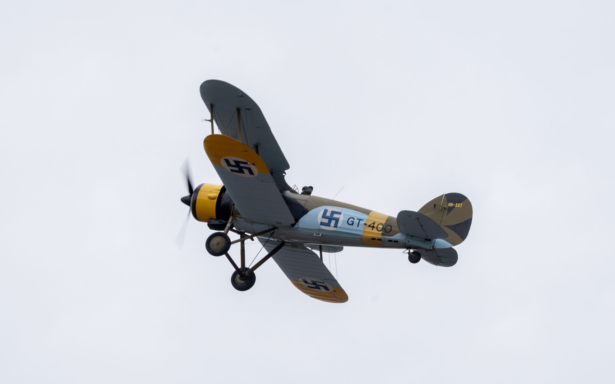 Päivän mielenkiintoista antia oli Gloster Gauntletin “uudelleen syntyminen”. Konetta on kunnostettu ja entistetty pitkään talkoovoimin ja nyt se pääsi ilmaan esittelylennolle. Tämä konevanhus on englantilainen 30-luvun lopulla valmistettu harjoitushävittäjä, jota käytettiin sodan aikana opetustehtävissä.