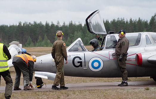 Hienosti se taas kiisi taivaalla satojen silmäparien seuratessa sen jokaista liikkeitä. Fouga Magister teki myös rullausnäytöksiä kentän pinnassa. Se antoi tuntuman suihkuturbiinien äänimaailmasta. Jos DC-3 mörisi, niin Fouga vinkui!