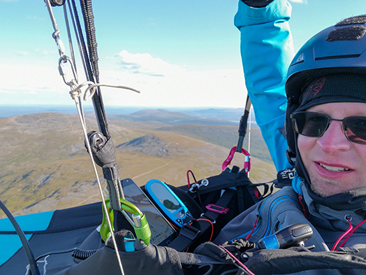Tunturissa varjoliitänyt Jere Malinen kertoo seuranneensa sääennustuksia tarkoin ja tavoitteena oli löytää vähätuulinen, mutta termisesti aktiivinen päivä.