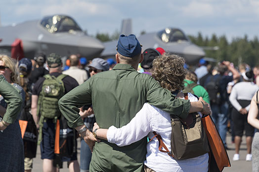 Pori Airshowssa vähennetään yleisöstä johtuvaa ympäristökuormitusta joukkoliikenteen, jäte-huollon ja kotimaisen ruuan myynnin avulla. Kuva: Rich Cooper: