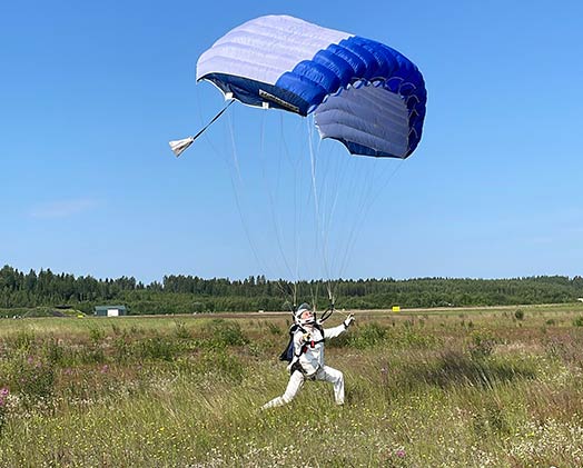 World Skydiving Day oli Jyväskylässä 134 hypyn päivä. Tomi Rossi hyppäsi juhlavasti valkoisessa puvussa, joka myös jäi tällä kertaa valkoiseksi… Kuva: Valtteri Pihlström