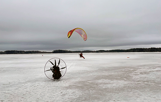 Käytössä oli periaatteessa kolme hinauslinjaa moottoroidun varjoliidon lisäksi. Tarjolla oli kaksi hydraulista kitkakelahinauslinjaa ja taittopyörähinaus, mutta kaikki pilotit halusivat hinaukset kitkakelalla parempien hinauskorkojen toivossa, koska järven jäällä neljän kilometrin hinaus mahdollista jopa kilometrin hinauskorkeuden.