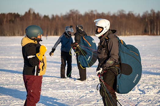 — Vapaalentoa ei Suomessa oikein pysty yksin harrastamaan. Jotta lentäminen on turvallista, tarvitaan kolme henkilöä. Yksi lentää, yksi hinaa ja kolmas toimii lähettäjänä. Vaikka taittopyörällä hinatessa hinaaja katsoo lentäjään päin, hän ei reilun kilometrin päästä näe tapahtuuko startissa jotain turvallisuutta vaarantavaa. Lähettäjä katsoo alkuvaiheessa, että kaikki sujuu niin kuin pitää ja tarvittaessa keskeyttää hinauksen radion välityksellä, hän perustelee.