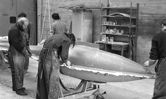 – Jos tämä olisi saksalainen kone, olisi se maalattu jo kahteen kertaan. Tätä on vain hiottu ja kiillotettu, selvittää Rissanen. Sen pinta kestää muun muassa sen takia, että siihen on käytetty suunnittelija Korhosen mukaan erityistä hartsia.