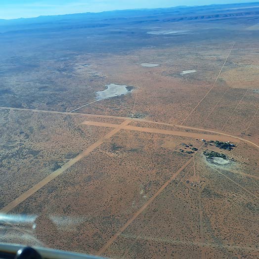 Alueella sijaitsee neljä lentokenttää, joista suurin ja kuuluisin on saksalaisten ylläpitämä Bitterwasser suuren, kuivuneen suolajärven reunassa. Jutun kirjoittaja Rami Lindström ja Hannu Halonen suuntasivat pienemmälle, itävaltalaisten operoimalle Kiripotibin lentopaikalle, jossa on kaksi kiitotietä ja maatilamajoitus.