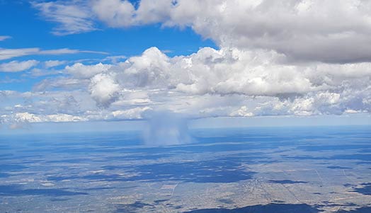 Reissun aikana cumulukset kehittyivät yleensä noin 200 kilometrin päähän itään, jolloin yleensä lennettiin ainakin ensimmäiset pari tuntia kuivatermiikissä. Omituista Suomen olosuhteisiin tottuneelle ja maastoa tarkkailevalle purjelentäjälle oli se, millaisista kohdista nostot lähtivät. Tasaisessa autiomaassa on joitakin teitä ja kuivuneita joen pohjia, mutta en koko reissun aikana löytänyt varsinaista logiikkaa nostojen lähteelle. Lähtökohta oli lentää suoraan reittiviivalla ja löytää nosto puolelta tai toiselta.