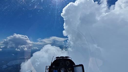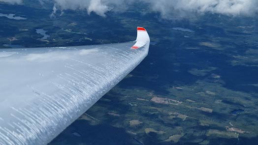 Muutamia kertoja kauden aikana olen onnistunut jatkamaan lentoa käyttämällä pilviä hyväkseni. Aamun matalissa pilvikorkeuksissa ei voi ylittää pitkiä metsätaipaleita ilman pilvilennon antamaa lisäkorkeutta. Illan tullen taas Joensuun ympäristön järvet tappavat usein nostot ja korkeutta pitää hankkia viimeisten pilvien sisältä.
