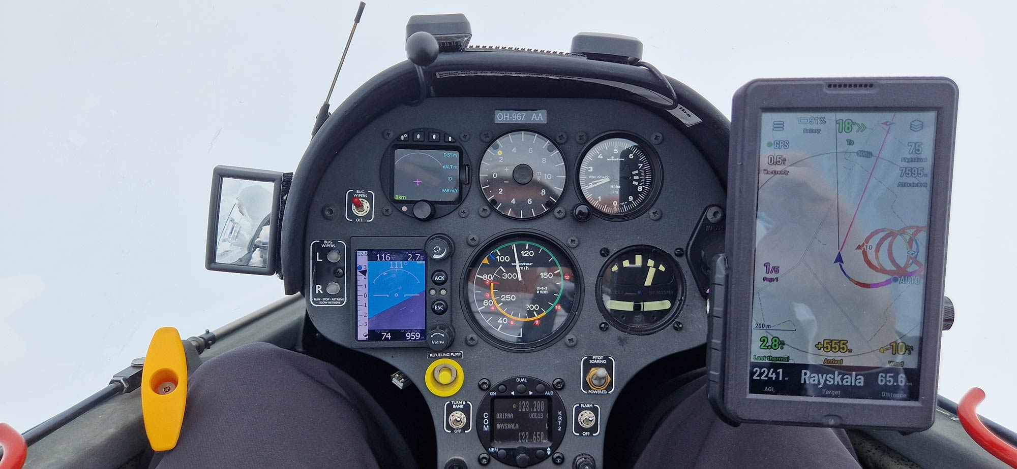 Power Flarm on paljon viisaampi, sillä se näkee myös ADSB:llä tai transpondelilla varustetut koneet. Omaa konetta se ei kuitenkaan tee näkyväksi ilman ADSB-lähetintä. Tämän saa varsin edullisesti transponderin kylkiäiseksi, ja se antaa tarkan GNS-sijaintitiedon muun muassa Flight Radar-verkkosivulle ja vastaavilla laitteilla varustetuille koneille ja lennonjohdolle. (ADSB-verkosto on hyvin kattava, joten kotiväki voi katsella menoasi kaikkialla Suomessa eikä perunat pääse turhaan nahistumaan kattilassa petettyäsi taas kerran lupauksesi tulla ajoissa kotiin). Pelkkä transponderi tekee sinut näkyväksi lennonjohdolle ja TCAS-laitteella varustetuille liikennekoneille, joten se on hyvä laite yksinäänkin.