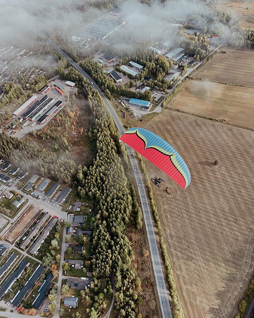 – Tykkään puhua lajista ja kannustaa nuoria. Tämä on kiva ja halvin tapa lentää, ja aina on adrenaliiniaspekti olemassa. Varjoliito on turvallista, kun muistaa aina tehdä lentoonlähdössä tarkastukset ja pitää laskeutumispaikan mielessä. Tämä on myös vapaata, sillä lentoon voi lähteä mistä vain, Packalen kehuu.