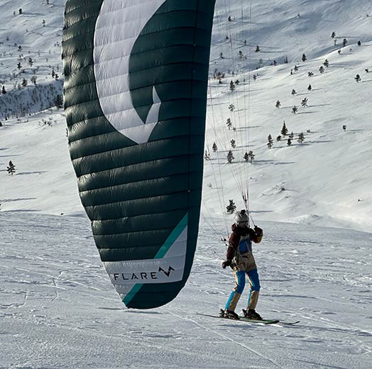 Flaren Moustache on suosittu rinnelentosiipi, joka yhdistää speedgliderin ketteryyden ja varjoliitimen liito-ominaisuudet. Sen erityinen ohjausmekanismi tekee siitä vakaan ja tarkan – täydellinen valinta tunturituulessa leijailuun.