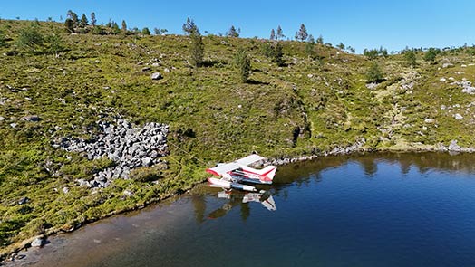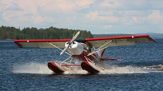 Vesilentokoneella pääsee moniin sellaisiin paikkoihin, joihin pyöräkoneella ei voi laskeutua, kuten Lapin erämaahan. Kuva: Mikko Sinervä