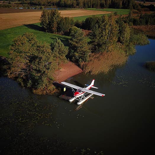 Tuhansien järvien maassa vesilentäjällä on lukemattomia laskeutumismahdollisuuksia, ja kukapa lentäjä ei olisi joskus haaveillut laskeutumisesta omaan mökkirantaan.