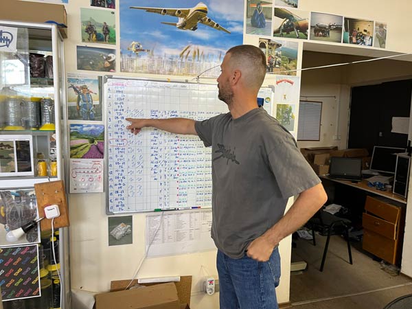Tehdaspäällikkö Sergii Kryshevych on tuore laskuvarjohyppääjä. Hän aloitti hyppäämisen kesällä 2021 ja sai lisenssin saman vuoden syksyllä. Vain puolisen vuotta myöhemmin alkoi sota, joka katkaisi harrastuksen. Hänellä on 26 hyppyä, ja hän on hiukan positiivisempi kuin Sharadkin.