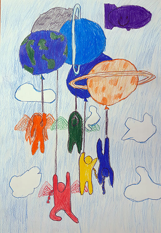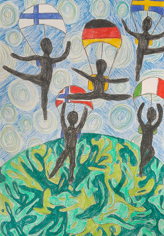 Vanhempien sarjan voitti vaasalainen Saara Nelimarkka oivaltavalla piirustuksellaan, jossa laskuvarjohyppääjät putoavat maiden lipuista tehdyillä laskuvarjoilla avaruudesta Maapalloa kohti. Samassa sarjassa toiseksi sijoittui vaasalainen Kerttu Tornikoski myöskin laskuvarjoaiheisella piirustuksella. Piirustuksen hehkuva värimaailma sai liiton toimiston henkilökunnasta koostuvan raadin kiitokset. Kolmanneksi sijoittui pihtiputaalaisen Inna Kinnusen kuumailmapalloaiheinen teos, joka ulottui avaruudesta ilmakehän kautta maahan saakka.